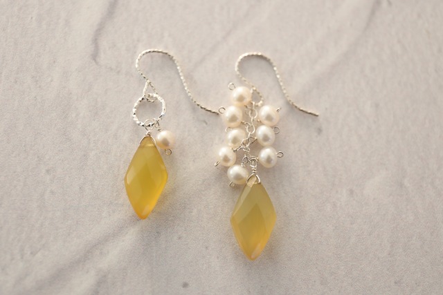 【商品説明】 オーストラリア産のイエローカルセドニー(ダイヤカット)に、 艶やかな淡水パールを合わせたアシンメトリーピアス。 サイドごとに異なるデザインが、動くたびに表情を変え、 シンプルな装いにも自然とオシャレ感をプラスしてくれます。 イエローカルセドニーの透明感ある輝きと、 淡水パールのやわらかな光沢が調和し、 大人の女性にちょうどいい上品さに。 素材はすべてシルバー925を使用。 パールはツヤ・テリの美しい、クオリティの高いものを厳選しています。 カジュアルからきれいめまで、幅広いコーディネートに馴染む一点です。 【素材 サイズ】 金属素材…ピアスフック ワイヤーSILVER925 淡水パール3㎜前後 カルセドニー9×16×5㎜