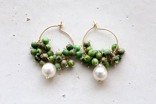 14KGF malachite topaz pearl pierce[kgf0511]
