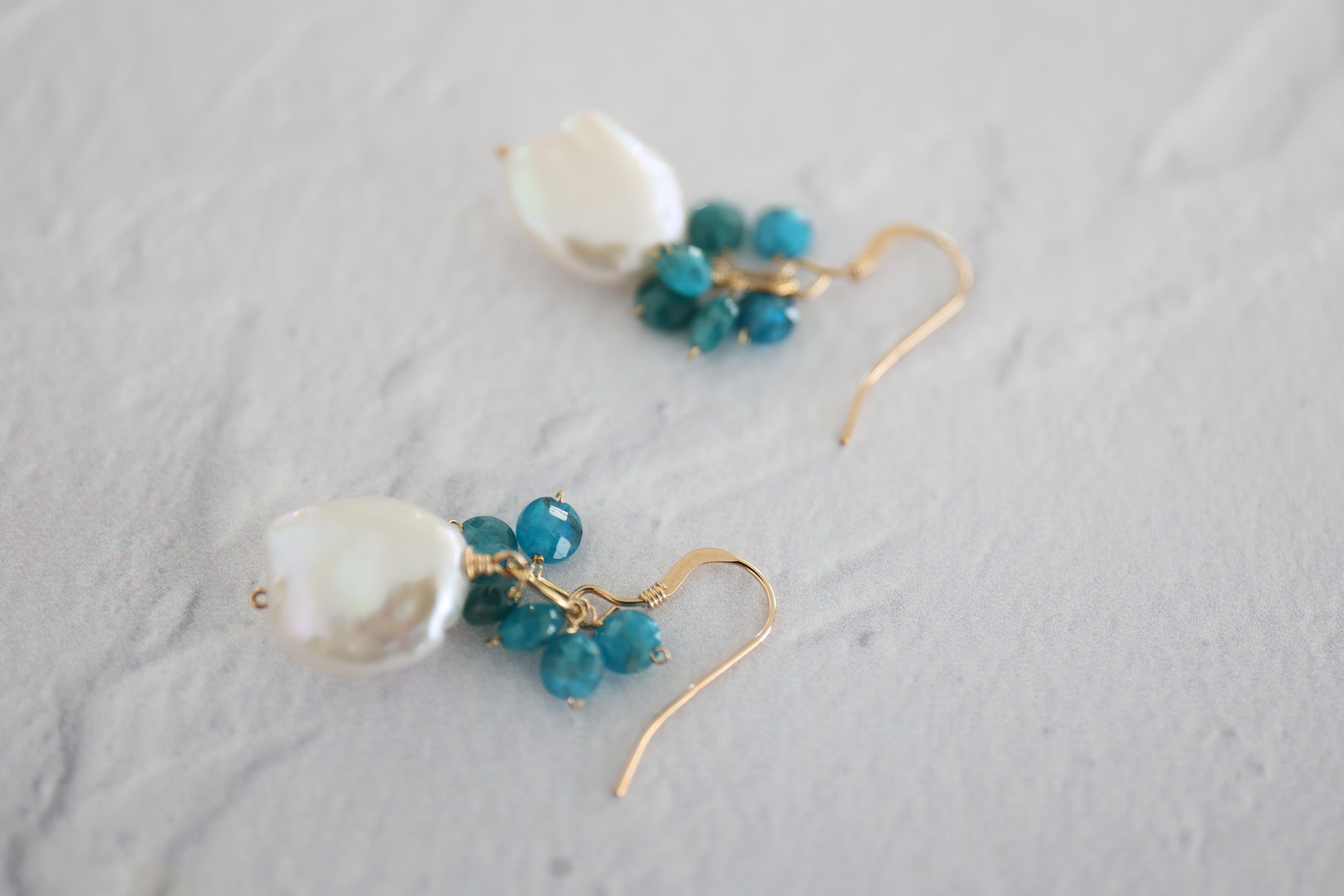 深い湖を思わせるブルーアパタイトは、ミラーカットが施され、