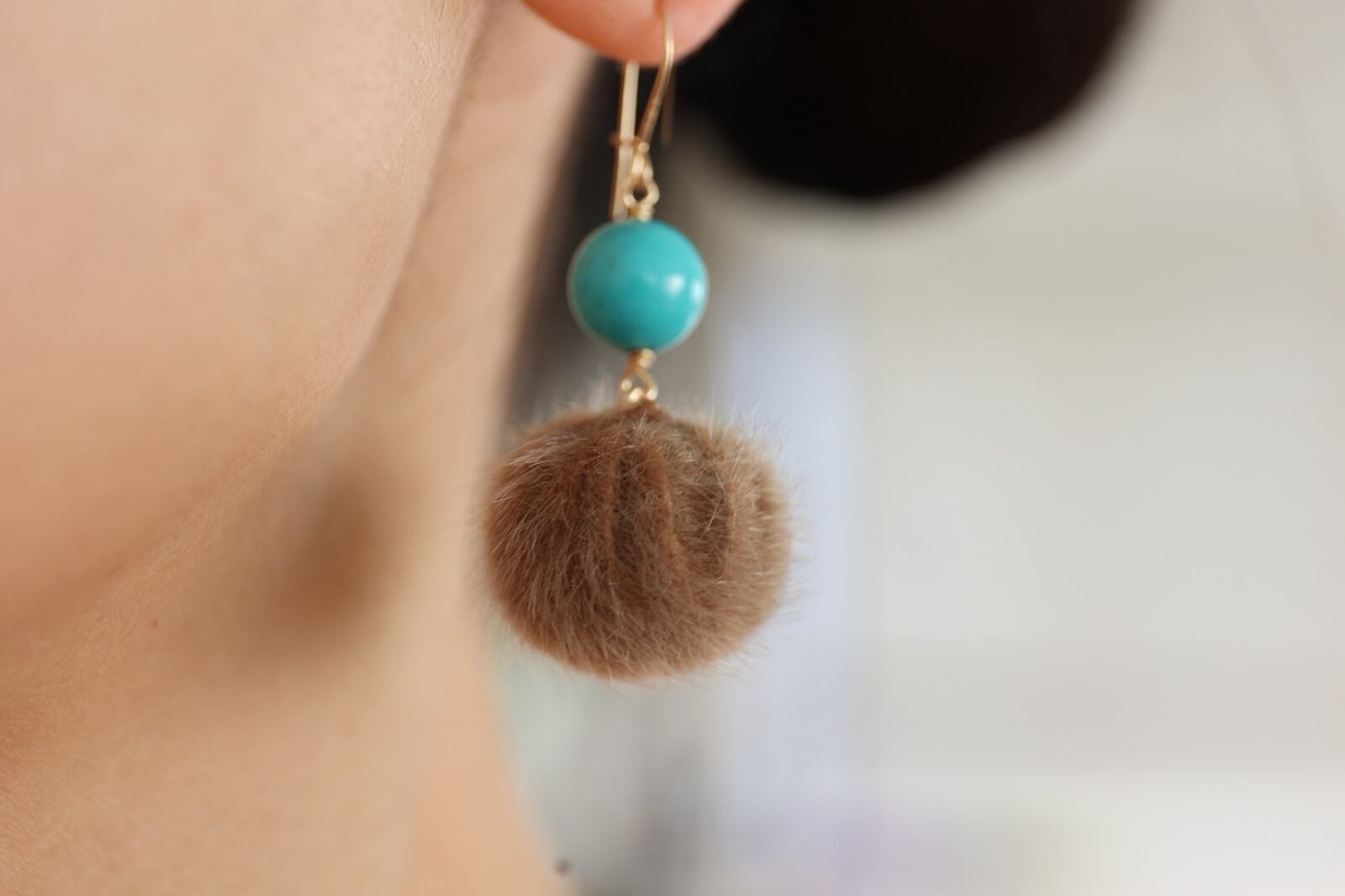 温かみのあるブラウン系フェイクファーを合わせて、これからの季節にぴったりのピアスになります。