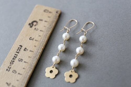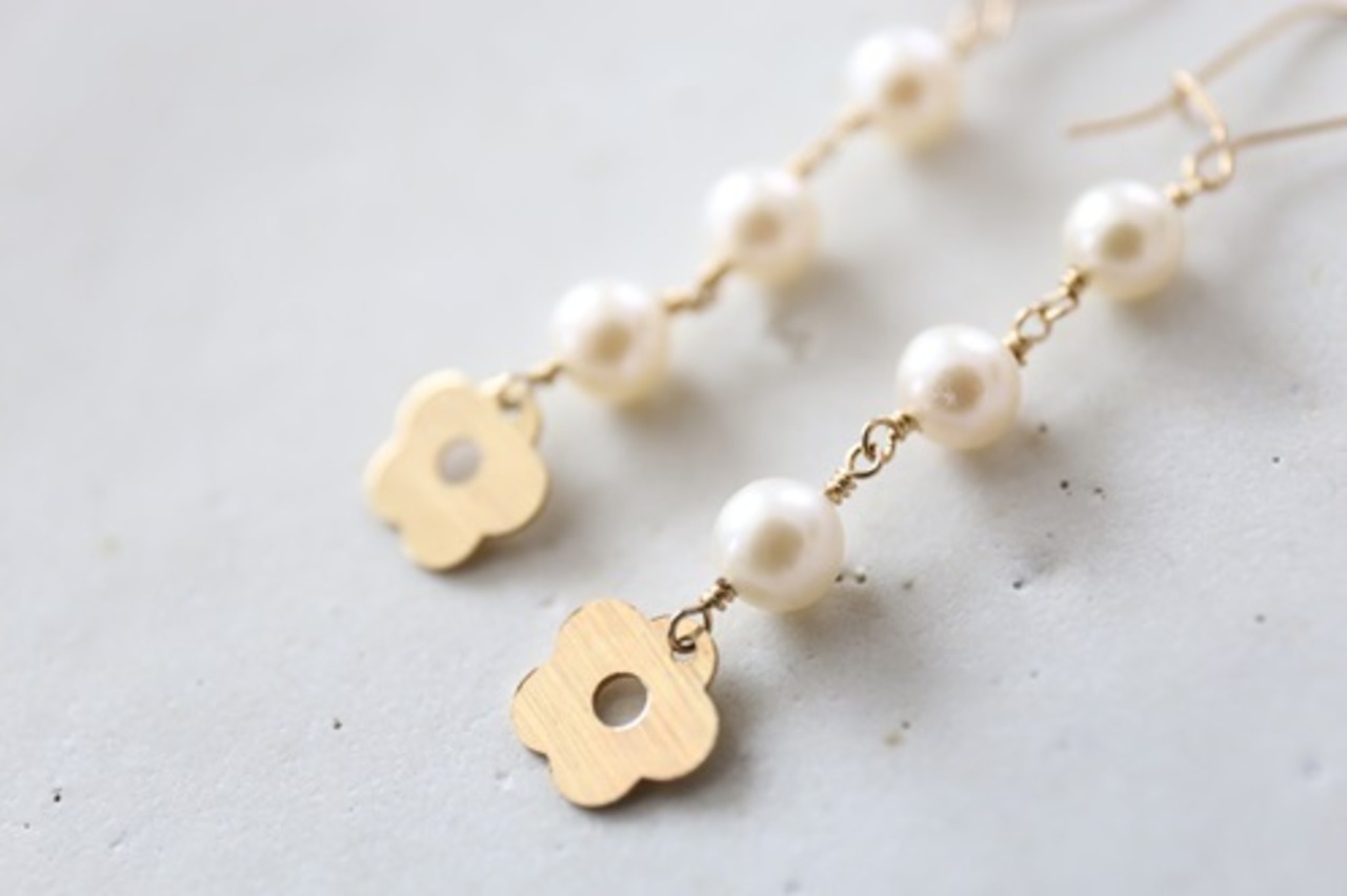 つるっとした丸型の淡水パールと、18Kコーティングのフラワーパーツを合わせました。