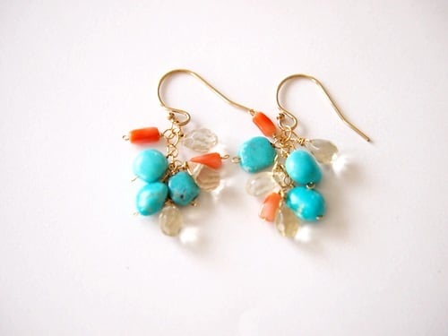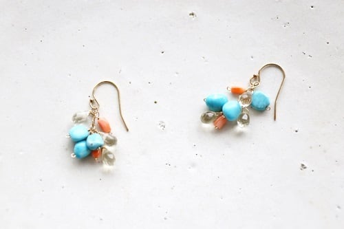 夏らしくコーラル珊瑚をあしらったピアスになります。