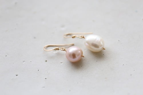 左右、色も形も違うけれど、きっとお気に入りのピアスになると思います.