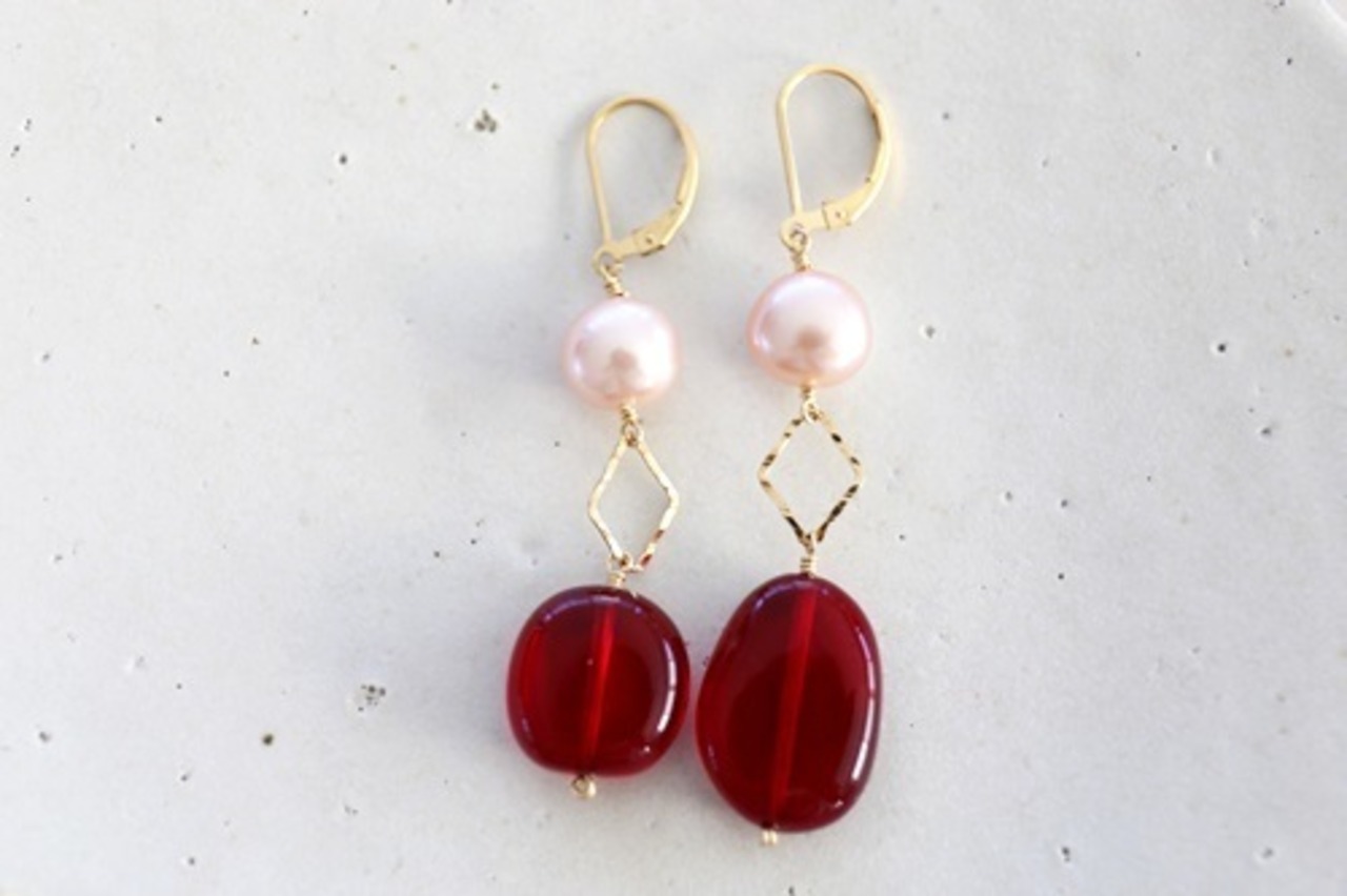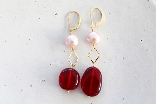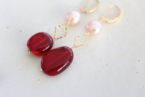 女性らしさの象徴でもあるピンクパールのピアスです。