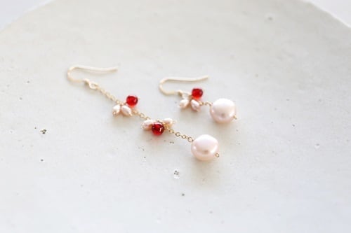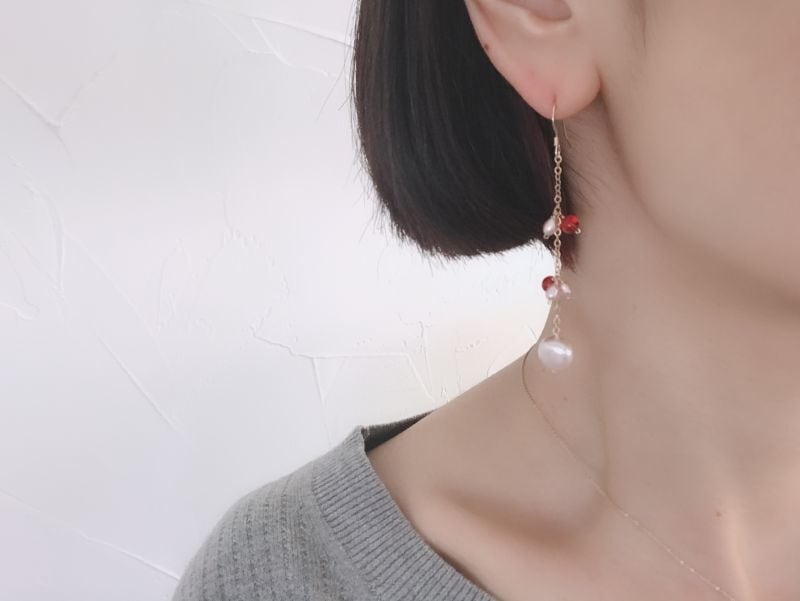 そして情熱を呼び覚ますと言われるレッドアンバーを使った、アシンメトリーのピアスです。