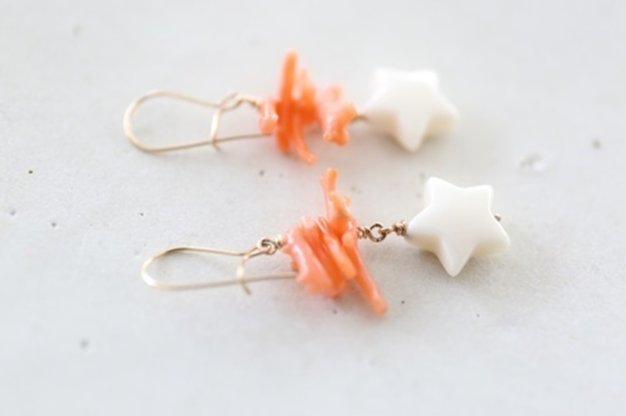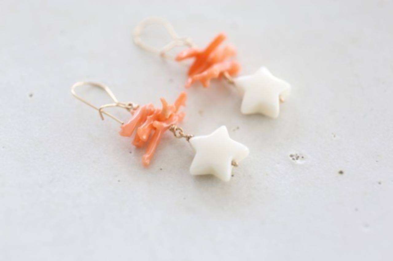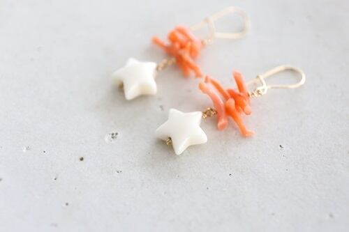 アイボリーカラーのお星様は水牛のボーンビーズで、