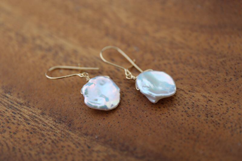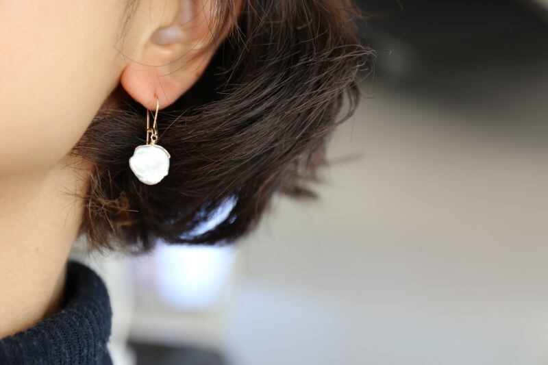 白薔薇の花びらが揺れるような、ハイクオリティのケシパールのピアスです。