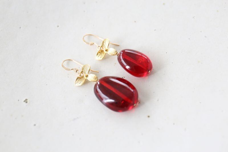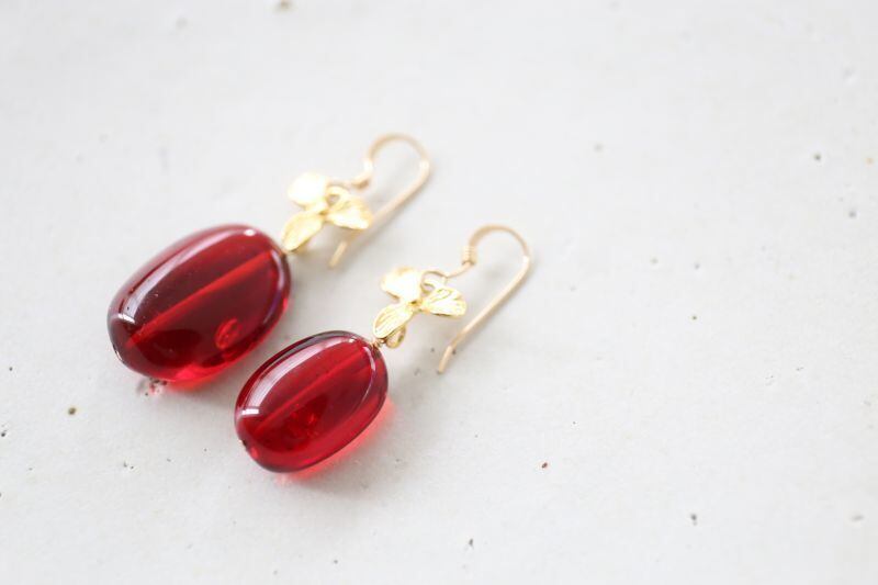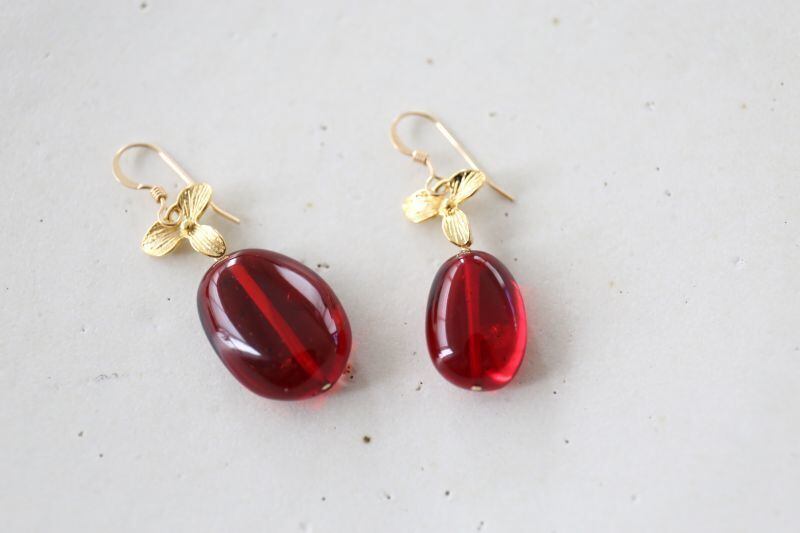 今回のワインカラーの琥珀は、天然琥珀に特殊な熱処理を施して深紅の美しい色を創出したものです。