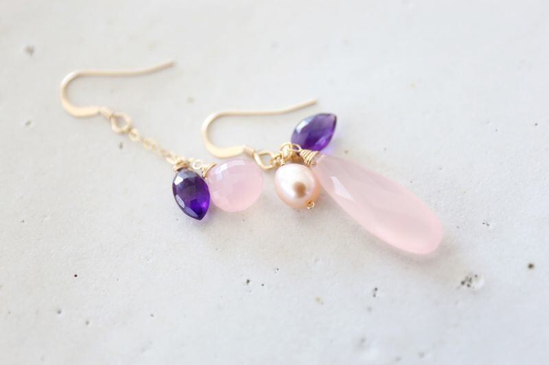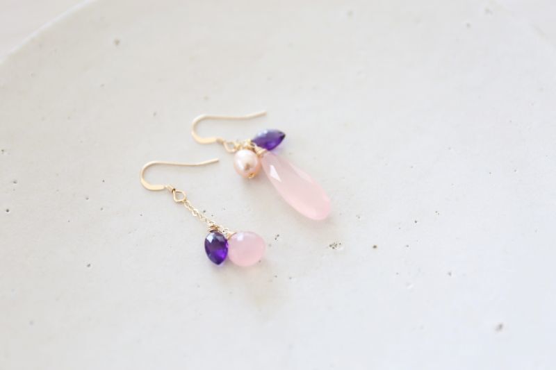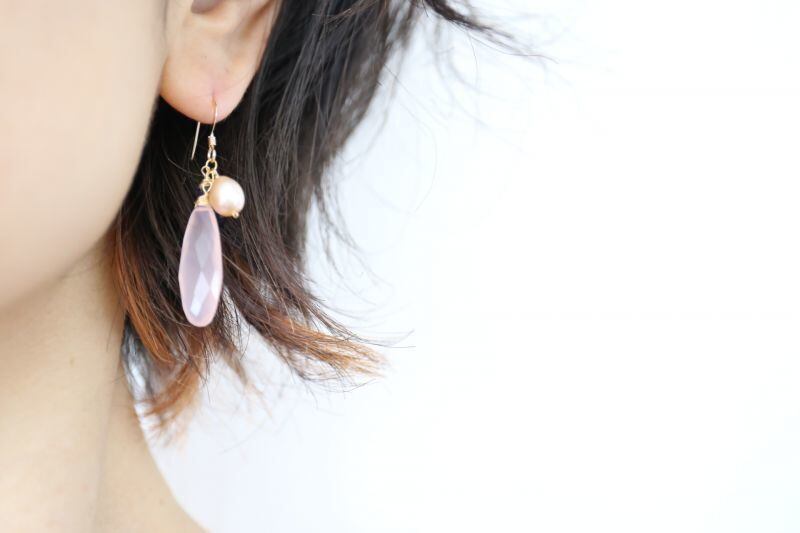宝石質ピンクカルセドニーのぷっくりとしたマロンカットと、