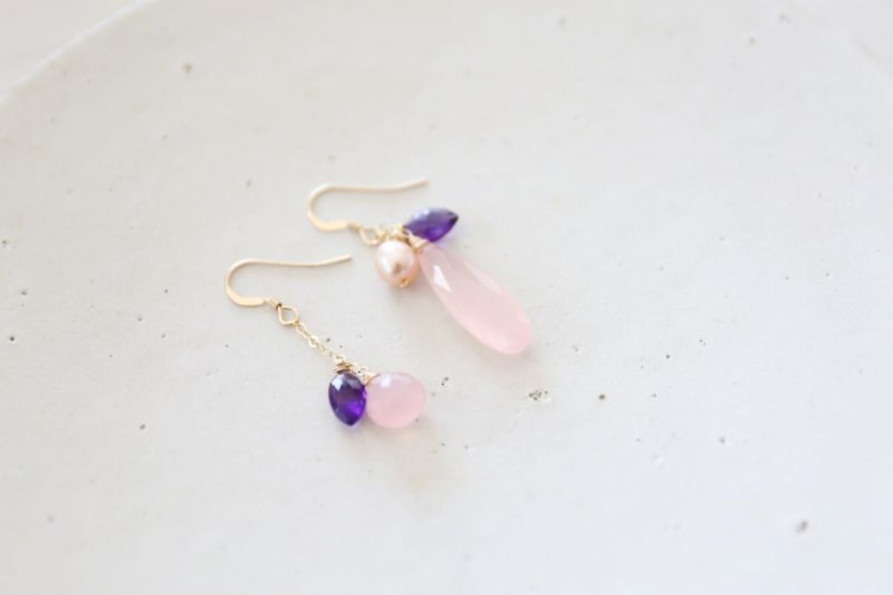スッと縦に長くカットが施された形状の物をアシンメトリーにしたピアスです。