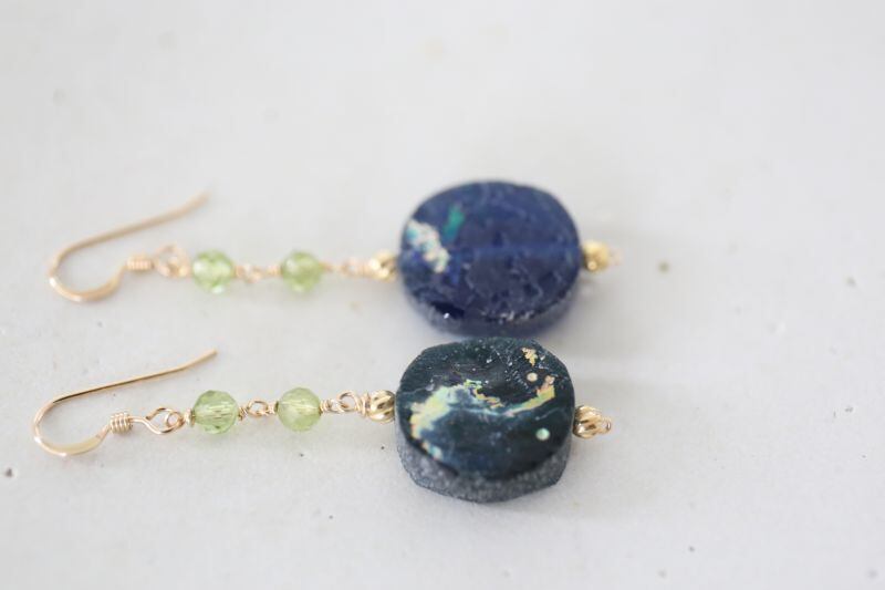 今回は特に虹色の銀化(地中でガラス内の物質が化学反応して、ガラス表面に虹色の模様が作られること。)が美しい物を選びました。