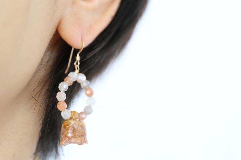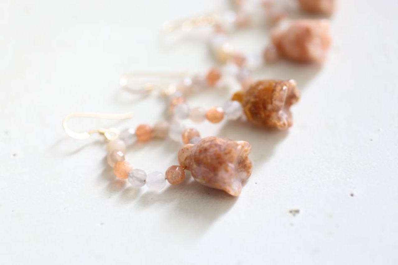 主張し過ぎない、マルチムーンストーンを合わせた、心やすらぐアースカラーのピアスです。