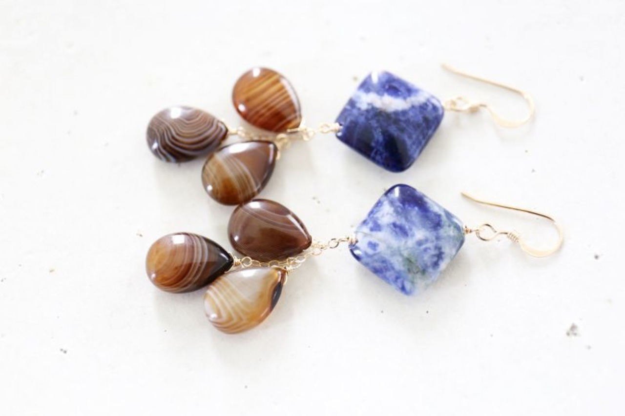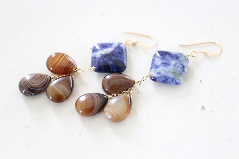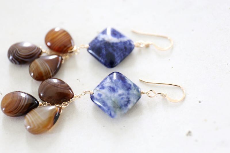 美しいブルーの鉱物が楽しめるアシンメトリーなピアスです。