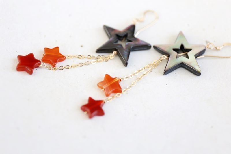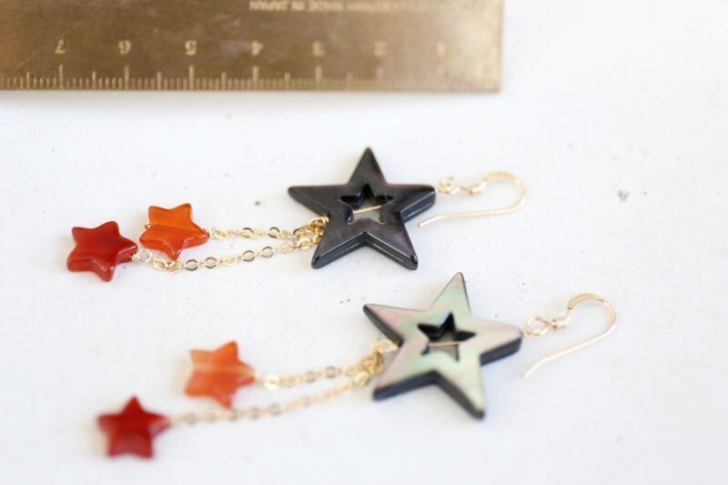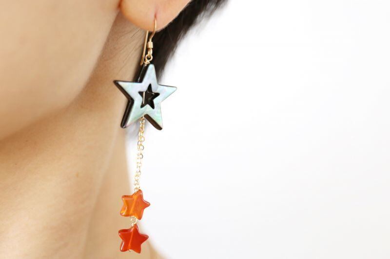 同じく☆型の小さなカーネリアンを合わせて、華やかな印象のピアスに仕上げました。
