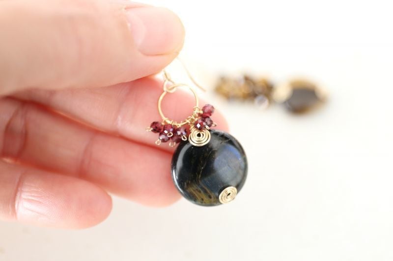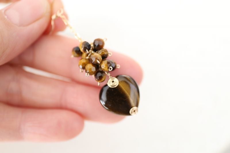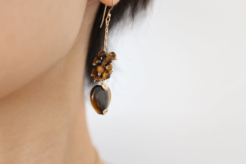 小さなタイガーアイをぎっしりつけてボリュームアップしています。