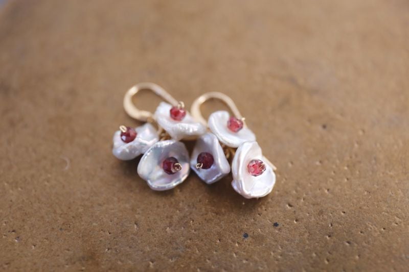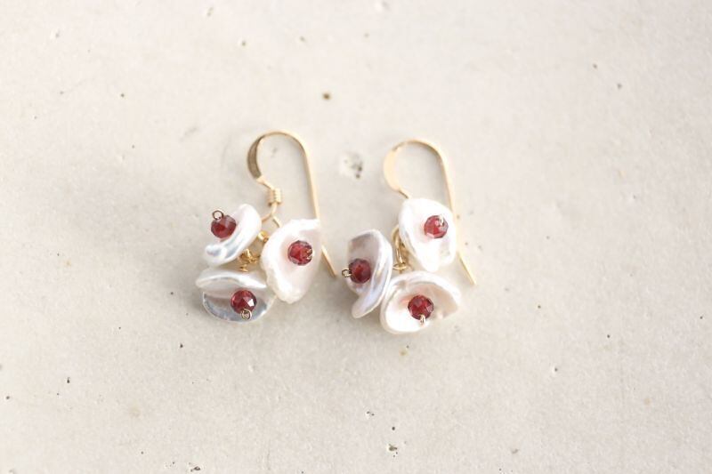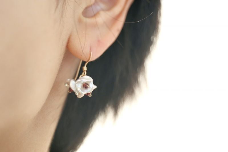 32面カットのガーネットをあしらった可憐なピアスです。