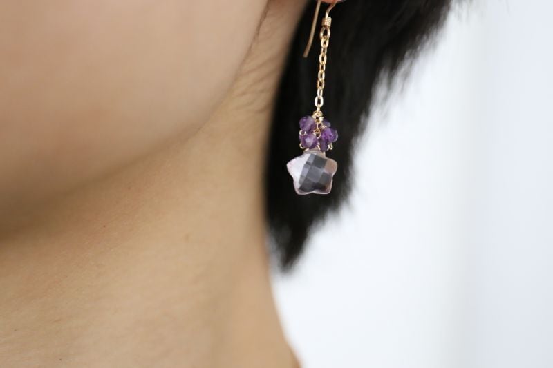 お星さまの形をしたピンクアメジストは、透明感とカットの美しさに思わず見とれてしまうほど。