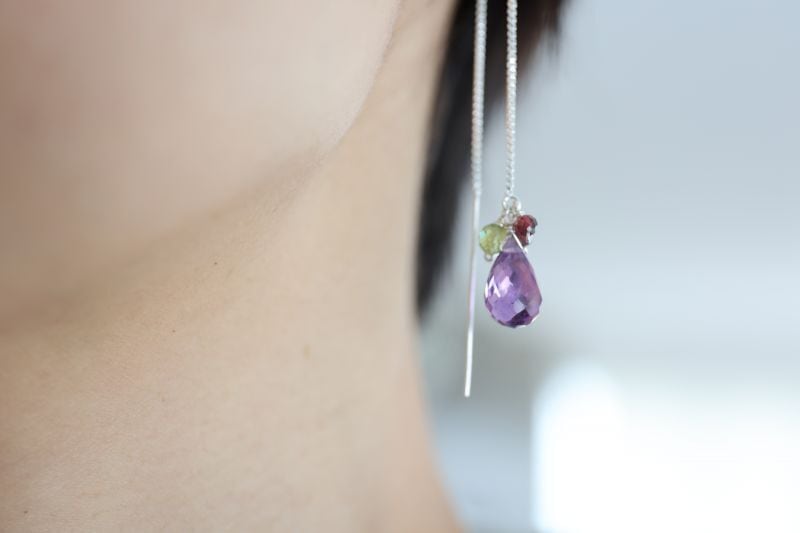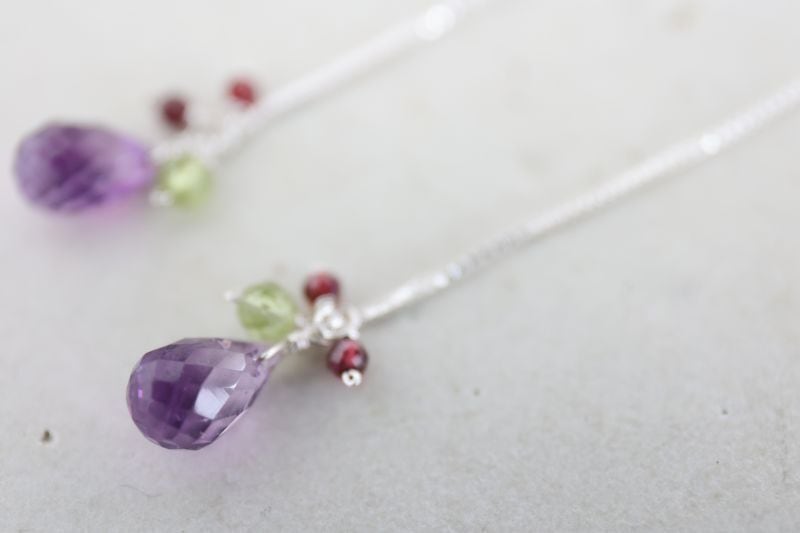ほどよい色味のドロップ形アメジストに、オリーブグリーンが美しいペリドット、