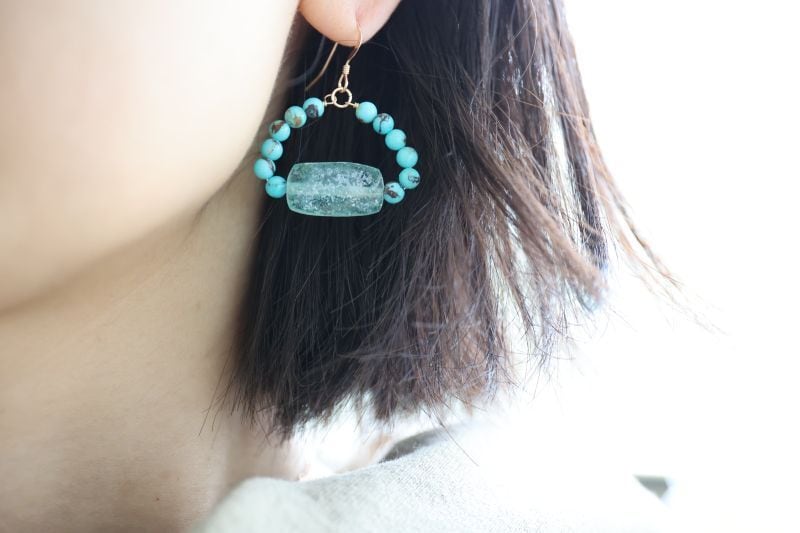 奇跡的で神秘的な古代ローマングラスとターコイズのピアス!