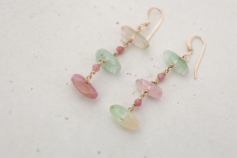 つるんとした形が可愛らしいパステルカラーのトルマリンは、バイカラーの物も含まれています。