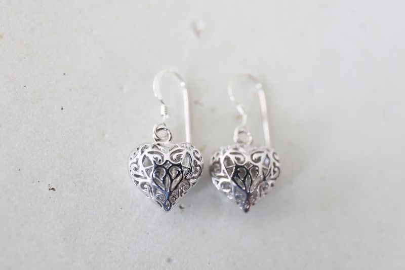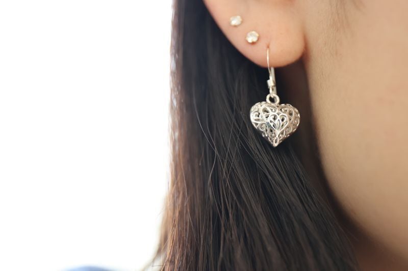 透かし彫り風のハート型ピアス。表も裏も同じ細工ですので、高級感があります。