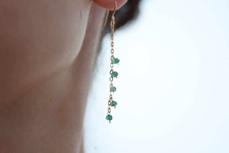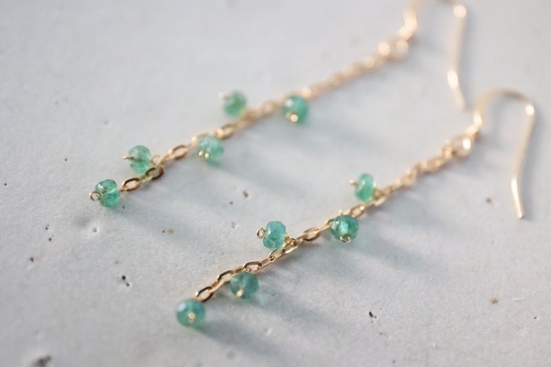 こちらのピアスは、エメラルドグリーンと呼ばれる独特の深い緑色が美しく、