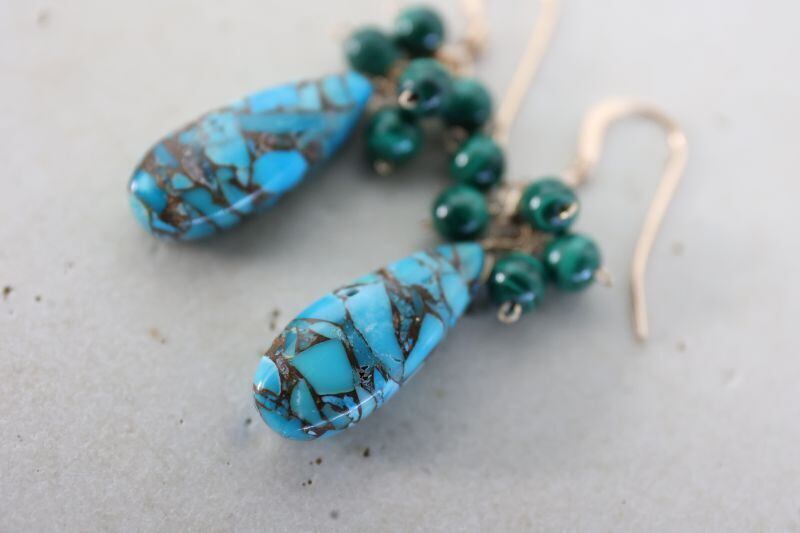 こちらはコッパー(銅)とターコイズを貼り合わせたお品で、