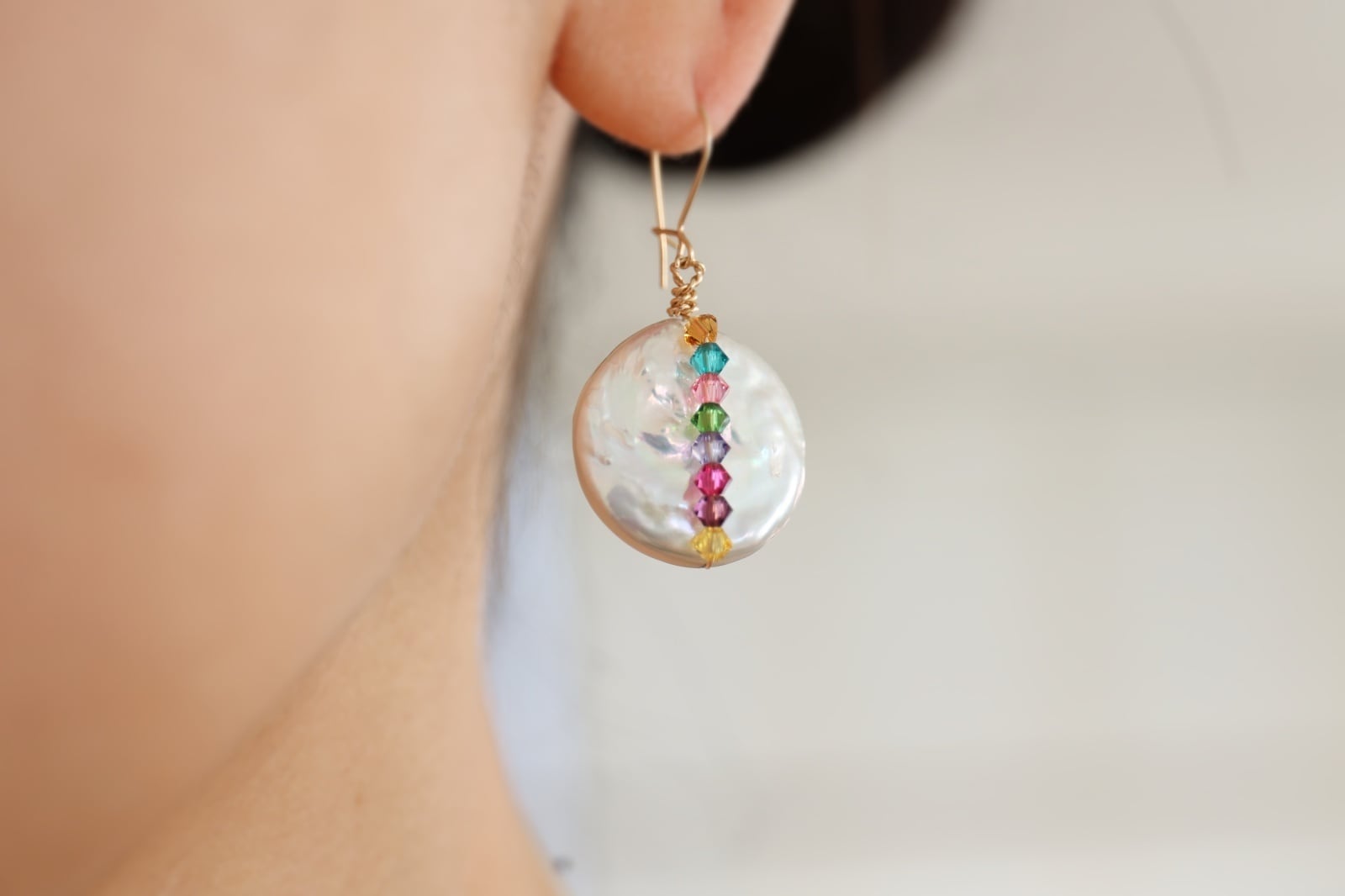 稀少価値のある20mmの大きなコインパールは、虹色の干渉色がとてもきれいです。