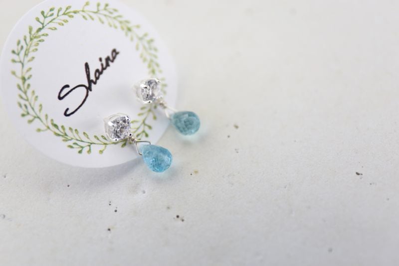 ブルーの輝きが爽やかな宝石質アパタイトのドロップをひと粒。
