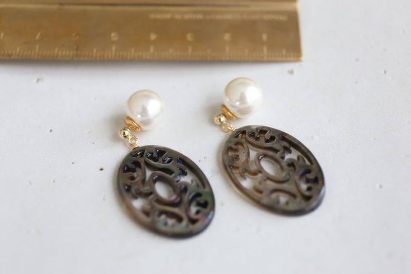 優れた職人により施された透かし彫りが美しい黒蝶貝に、
