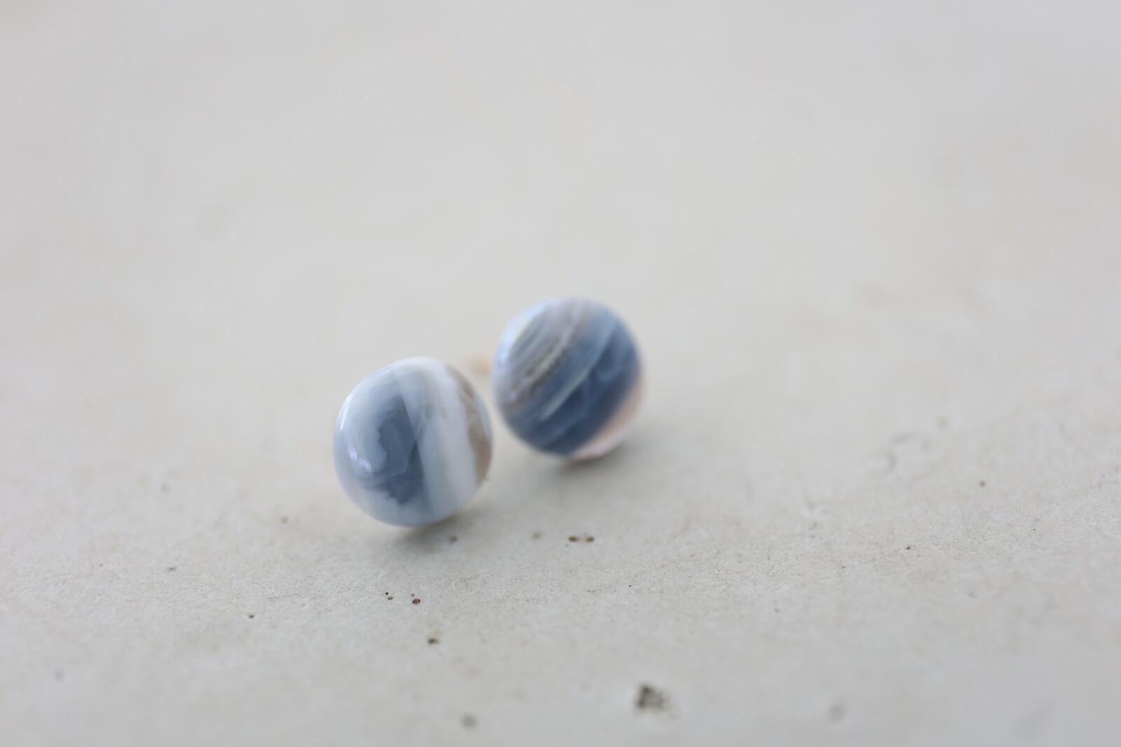 パステル調のブルーオパールとグレーのアゲートが作り出す天然のストライプ模様が、