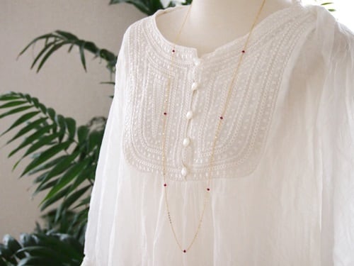 ネックレスの長さは86cmで、首元に華やかさを添えるデザインです。