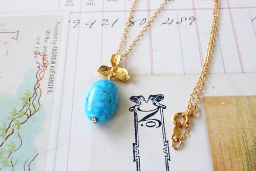 お花のパーツを合わせた、華やかな印象のペンダント。