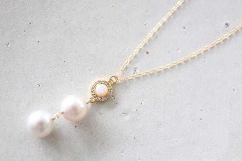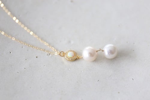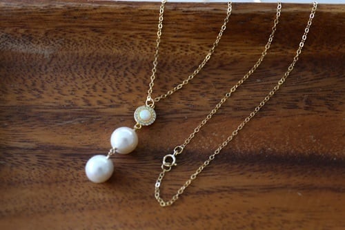 天然の魅力いっぱいのナチュラルラウンドパールを2つ繋げたネックレスです。