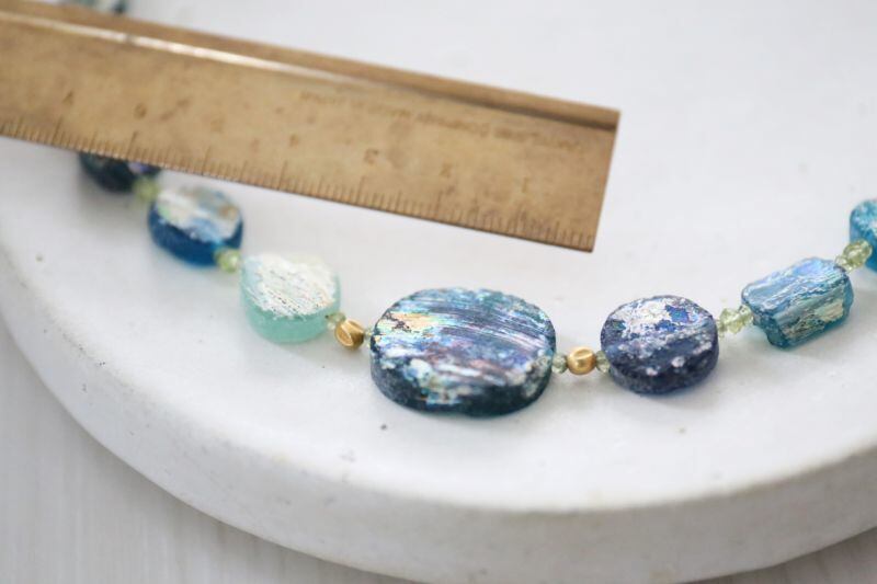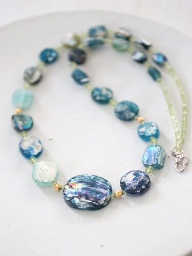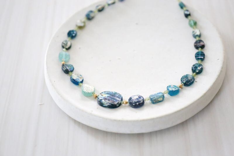 遥か昔に思いを馳せながらいつまでも眺めていたい、ローマンガラスのネックレスです。