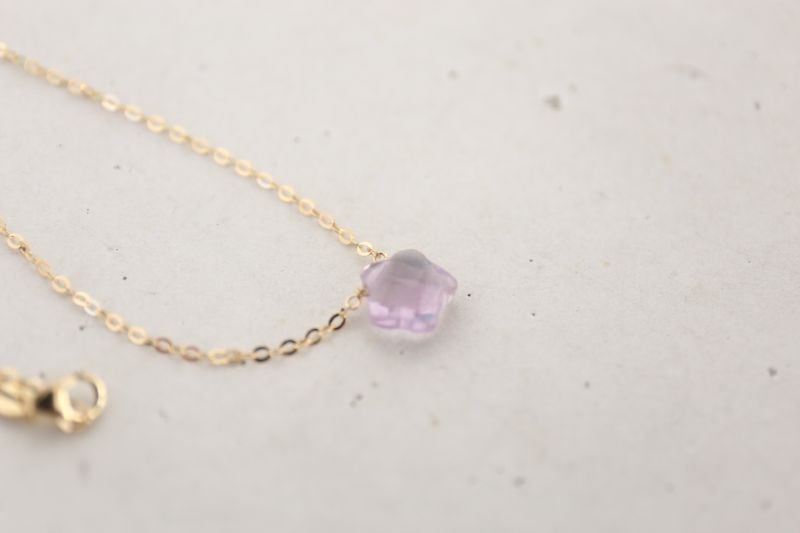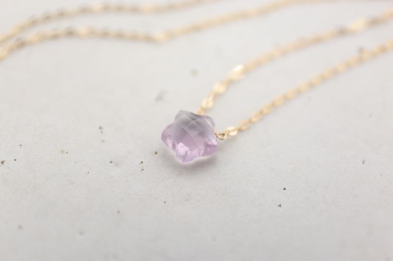 お星さまの形をしたピンクアメジストは、透明感とカットの美しさに思わず見とれてしまうほど。