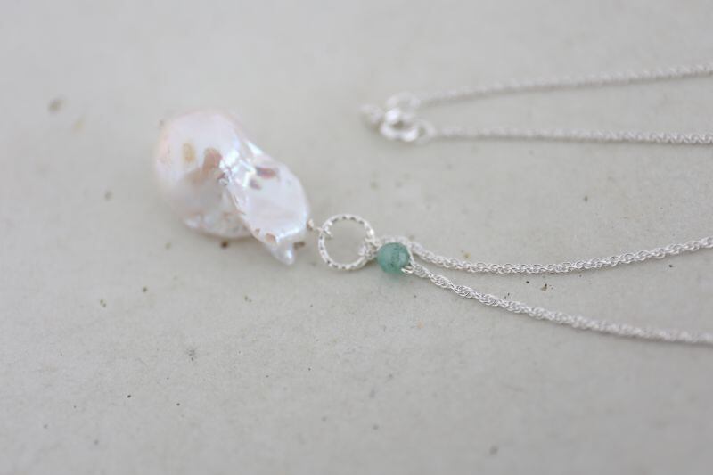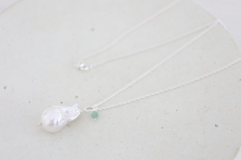 美しさを兼ね備えた、エメラルド付きバロックパールネックレス。