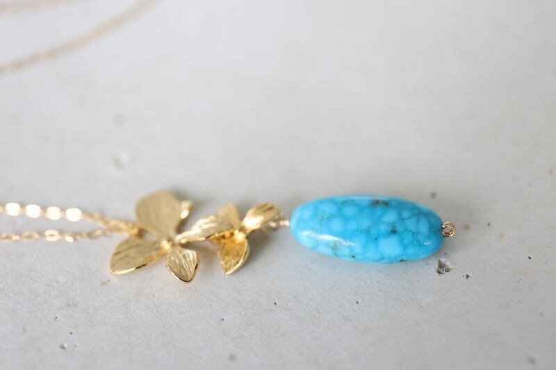 金色のお花のモチーフを合わせて、優しい雰囲気のネックレスになりました。