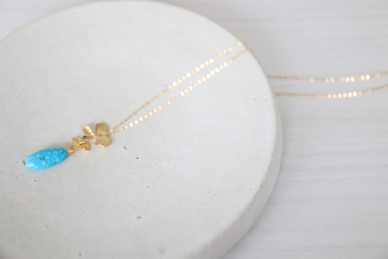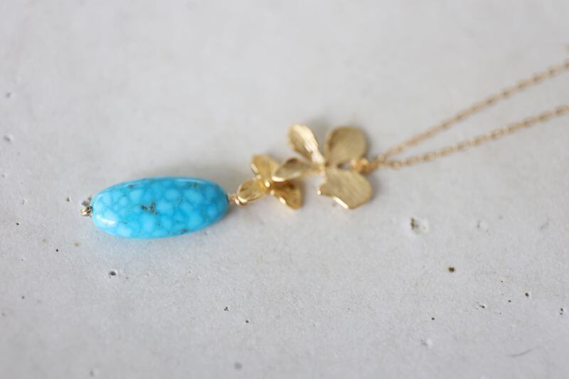 金色のお花のモチーフを合わせて、優しい雰囲気のネックレスになりました。