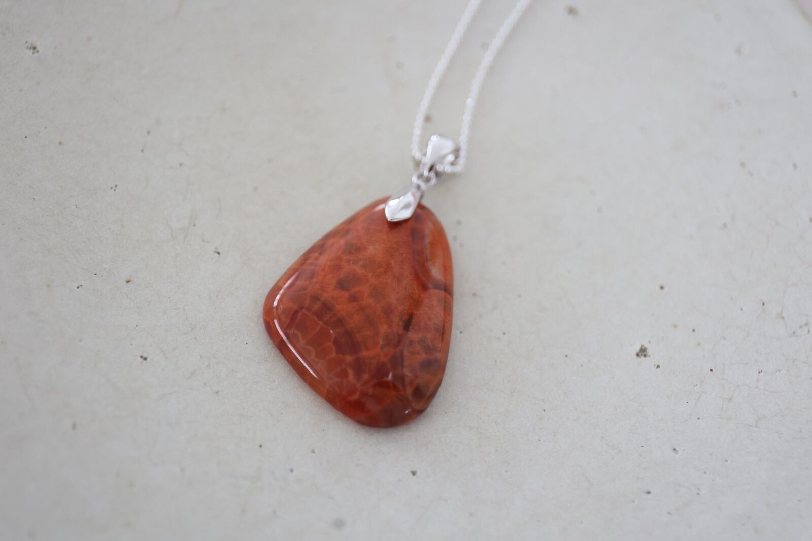 赤系と茶系の味わい深い色と模様が個性的で、まるで絵画のような印象のアゲートです。