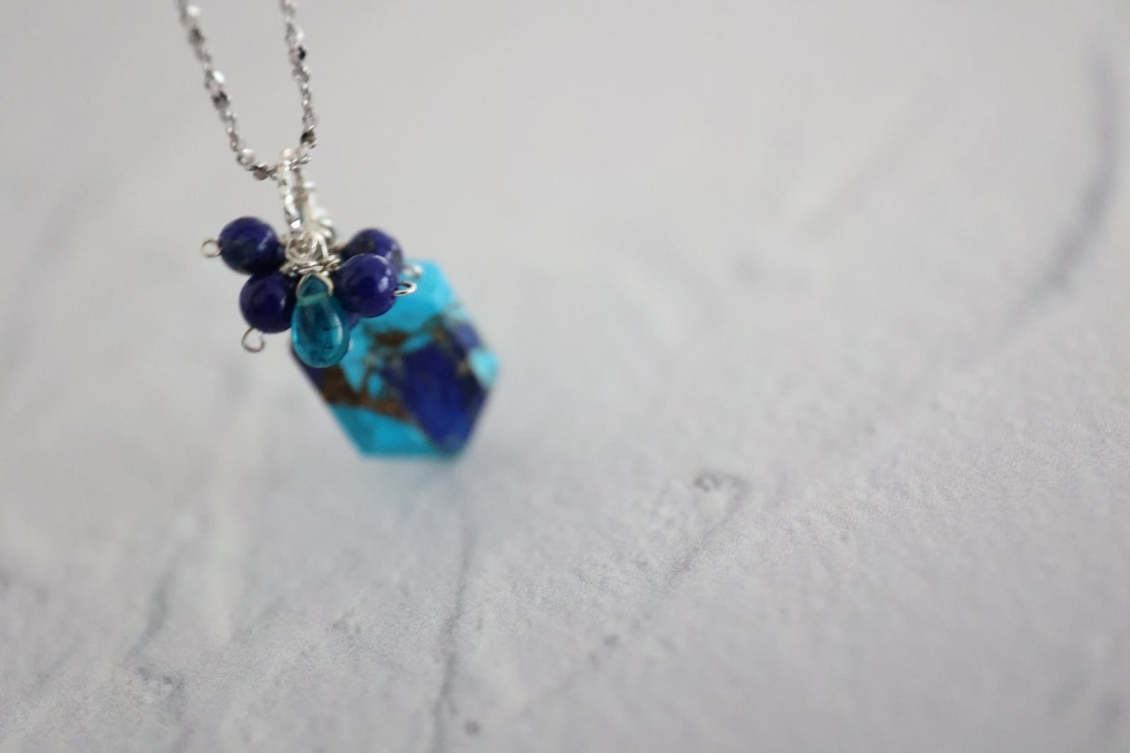 深いブルーに銅の煌めきが美しく溶け込む、ラピスラズリコッパーターコイズ。