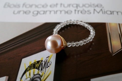 リングは、きらきら輝くホワイトトパーズのビーズで、涼しげな印象を演出しています。