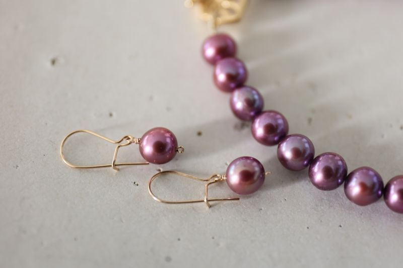 ほどよい大きさのパールは、パープルがかったピンクが何とも言えない愛らしさを醸し出しています。