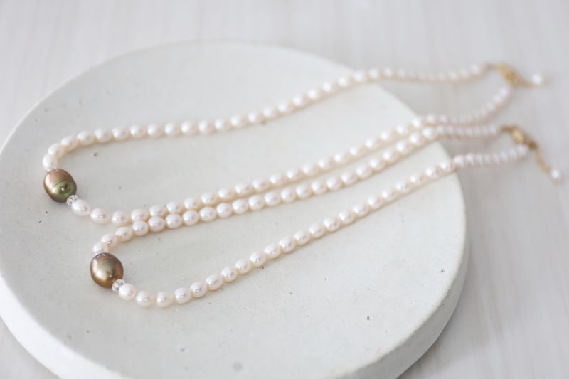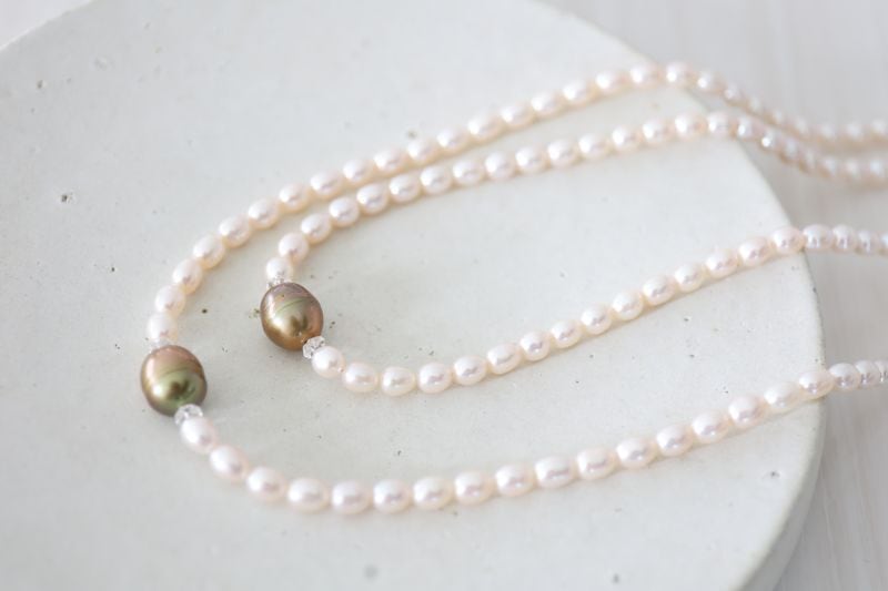 つやつやの極上パールの真ん中に、まるでドングリみたいな大粒のパールをひとつ。