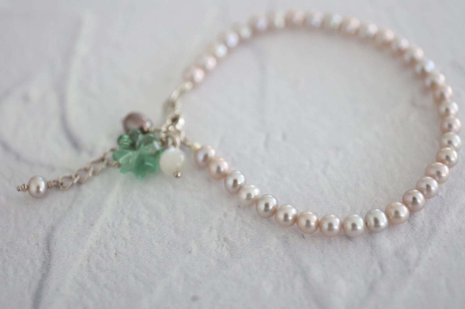 ややブラウンがかった艶々の淡水パールが上品なブレスレットです。