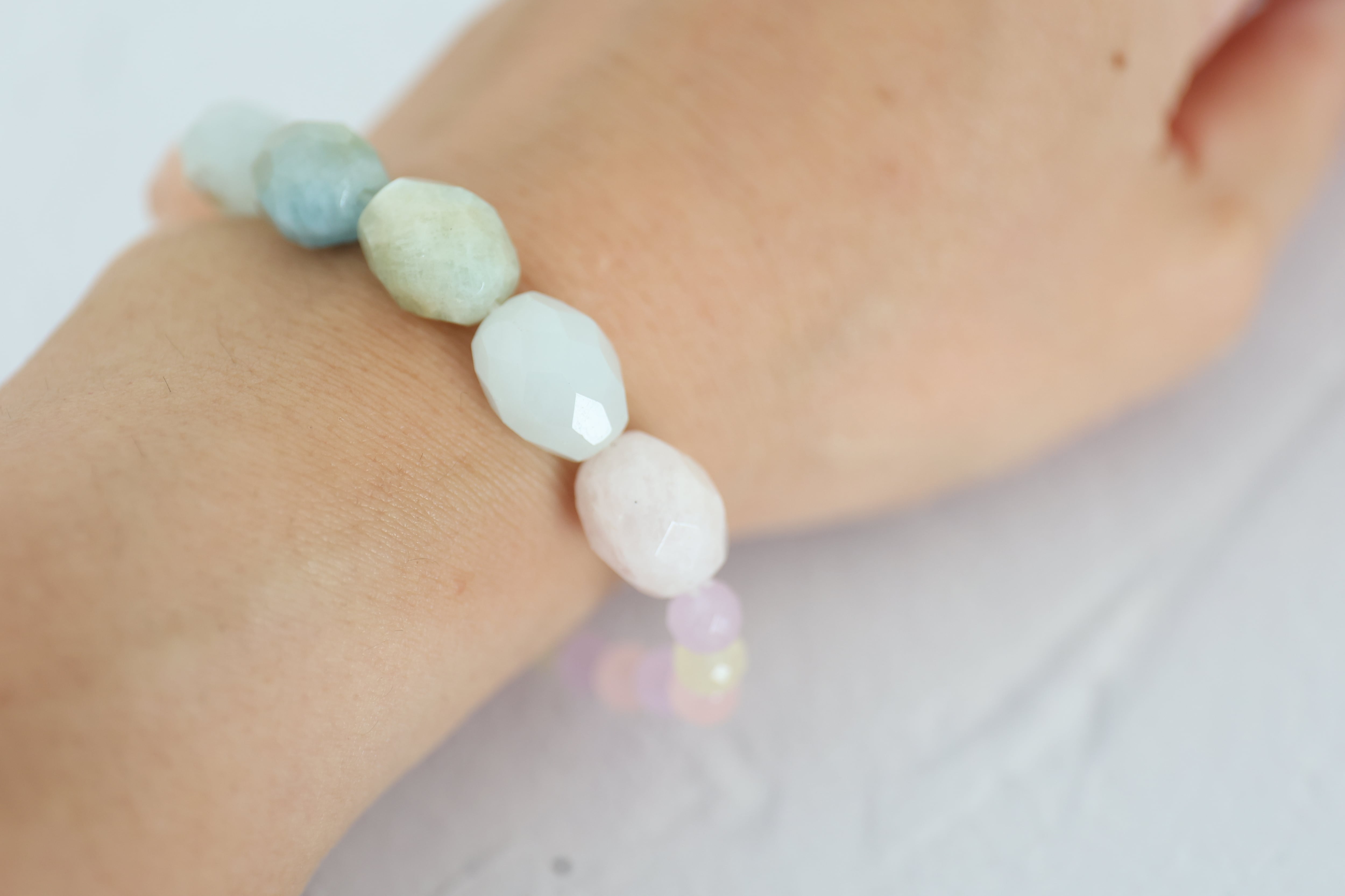 柔らかなパステルカラーが美しいアクアマリンを組み合わせたブレスレットです。