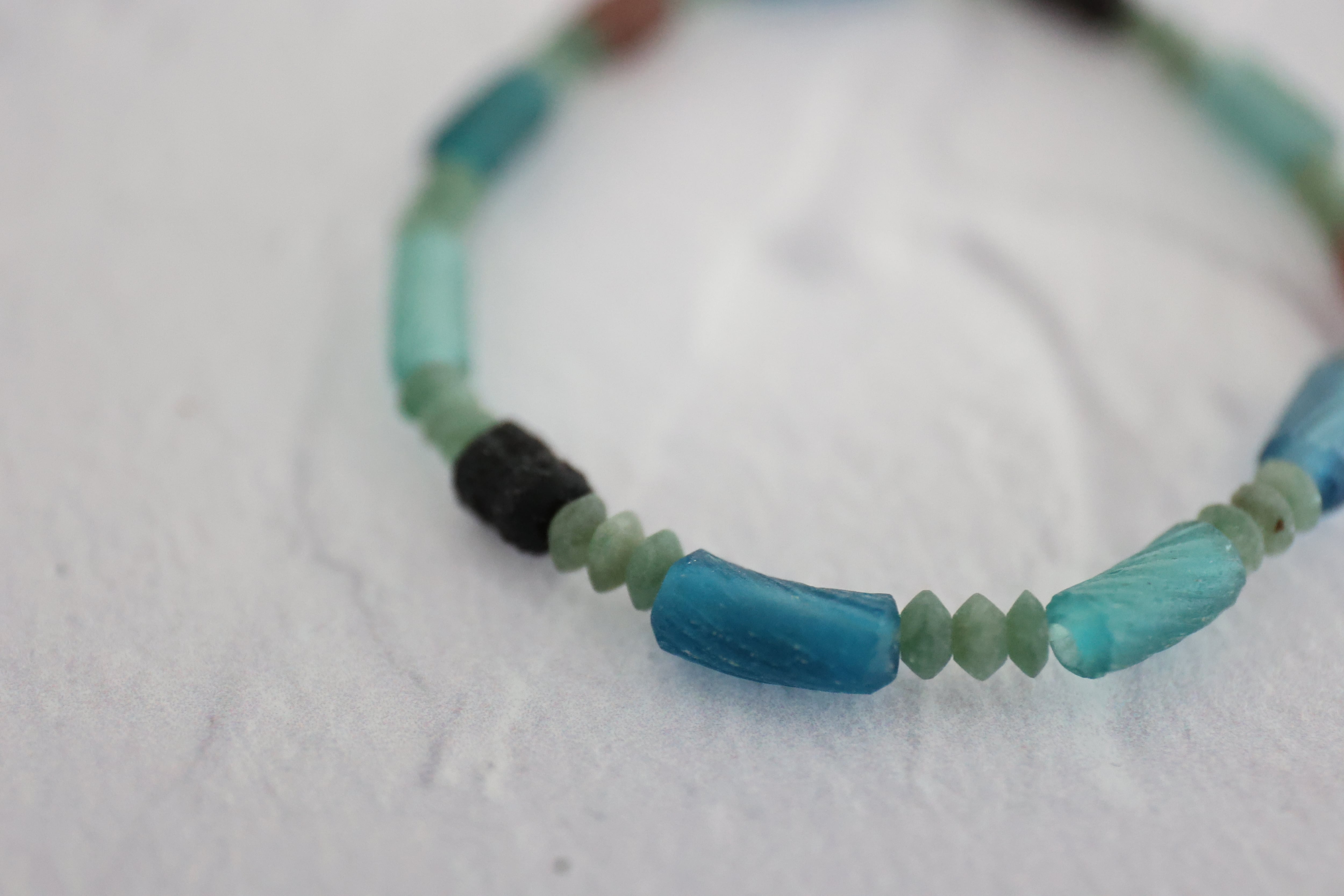 幾千年もの時を経て、21世紀に生きる私達がアクセサリーとして身につけるという、なんとも不思議で神秘的なガラスです。