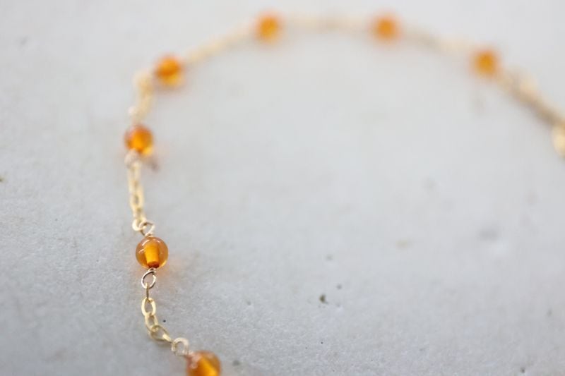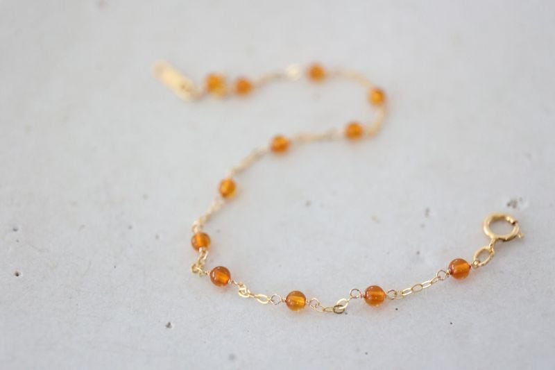 3mmの天然琥珀が可愛らしい、華奢なブレスレットです。