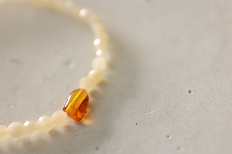 バルト海沿岸で採れた天然琥珀バルティックアンバーを合わせて。