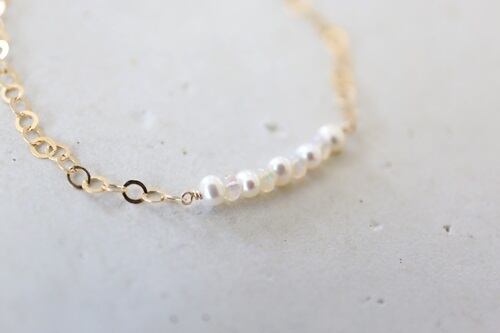 つやつや極上のベビーパールの間で、虹色に煌めくオパールが本当に美しく、本物ならではの良さを実感していただけます。
